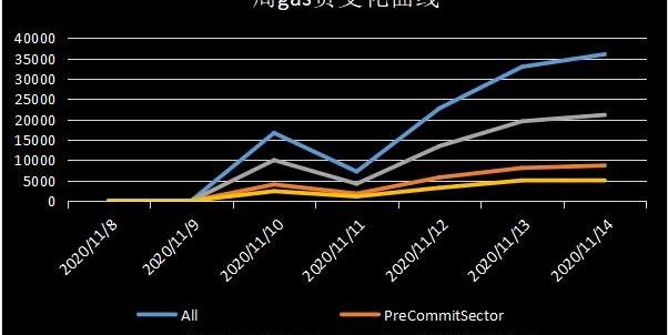 Filecoin一周gas费变化曲线,来源:IPFS原力区,2020-11-16不仅如此,因为手续支付费过低导致信息上链失败也有不少,最高时一天因失败损失的FIL高达千枚以上。笔者认为,Filecoin手续费过高主要有以下因素:算力增长过快,信息量过大导致拥堵。近段时间算力增长过大,直接导致信息过多,网络上普遍信息高达1100万条以上,比上周增长超过了100%;