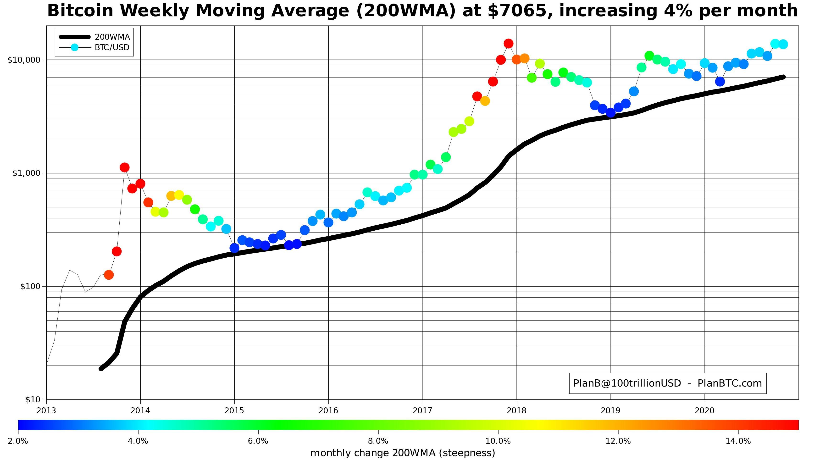 这项成就不仅仅是创下了比特币价格超过10,000美元的时间记录。根据之前的数据,一旦比特币交易价格在这些重要的价位以上保持100天,BTC/USD交易量就会迅速增加一个数量级。正如Cointelegraph上周报道的那样,时间的长短取决于所涉及的价格水平,但结果却是相同的——获利巨大。定量分析师PlanB指出,比特币未经测试的200周移动平均线现在首次突破了7,000美元,这进一步加强了比特币继续走高的论点。如果历史模式重演,那么比特币距离2024年区块奖励减半的时间越近,它相对于200周移动平均线的收益可能会更高。