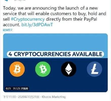 PayPal消息一经公布,便获得了加密圈和传统金融界的广泛关注。以太坊创始人第一时间向PayPal发来祝贺,并表示欢迎来到以太坊生态系统。
