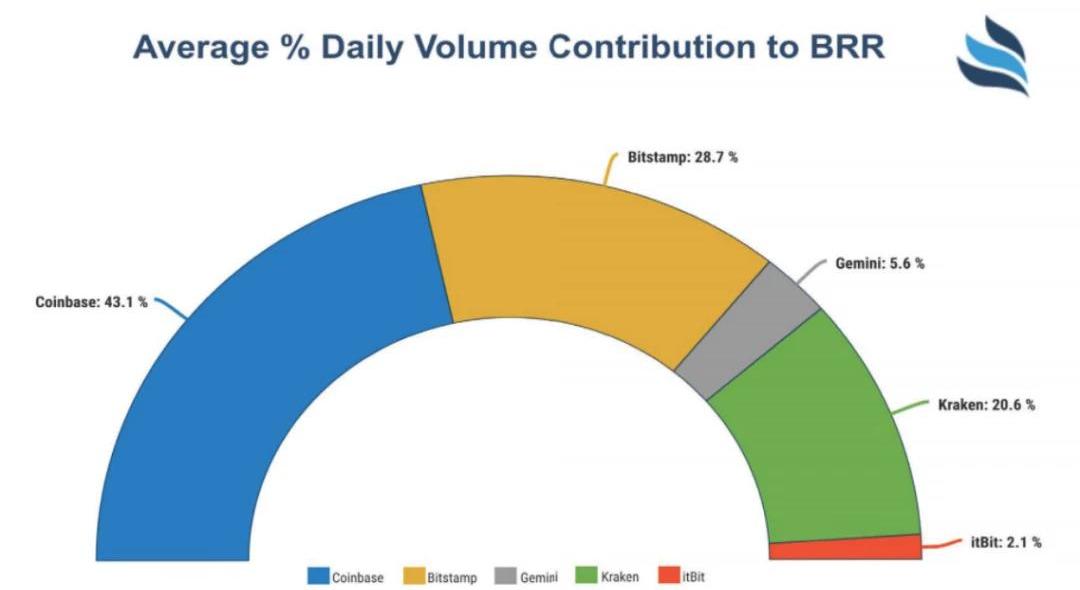 芝商所比特币参考利率成分来源:WilshirePhoenix对于CME和美国有抱负的基金来说,将稳定币交易量排除在外,而将重点放在监管更严格的交易所或许是更有意义的。根据2019年的BitwiseInvestments报告,即使在CME没有发现比特币价格,多年来套利效率也有所提高。Bitwise的分析发现,“这十个交易所之间的套利实际上是完美的”。因此,由于没有持续的价格差异,CME参考指数可以轻松选择少数交易所,但前三家除外。尽管最近的Bitwise比特币ETF提案已经撤回,但其价格形成与竞争对手有所不同。Bitwise使用更广泛的基本成分,它还包括基于稳定币的交易所。