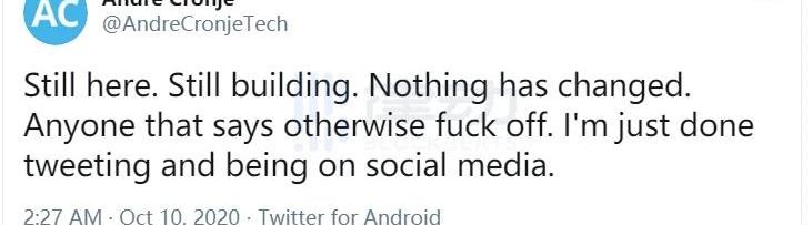 自从参与开发的DeFi项目Eminence.finance遭黑客入侵后,他本人收到了许多威胁信,这几天,关于AC退圈的消息开始流传,社区也逐渐感受到他的缺席,「隐瞒这一信息已不再符合公众利益。」Coindesk在报道中表示。在AC回应之前,种种迹象也表明,AC似乎下定决心离开。今年8月8日,海外加密货币媒体Decrypt也曾报道援引AC本人的话,表示将离开DeFi行业,但很快就对此回应,报道有些夸大其辞,自己当前遇到的这些问题都不会构成阻碍,其也将继续留在DeFi领域进行建设,除非没有任何东西可以开发了。但这段时间,AC再一次离开的消息已经发酵好几天了,由于都是第三方或者社区怀疑,AC并未对此做出回应。直到Coindesk的采访消息出现。在AC消失的这段时间,没有人直到他经历了怎样的心路历程,社区流传的基本上都是他要离开的消息。比如有人证实了他收到的威胁十分严重,还有人表示他经历了一场可怕的事故。对于愈演愈烈的传言,还有人在号召社区挽回AC。一个昵称为「Niffler」的用户在社区发起一个名为「给Andre的情书」的帖子,目前已经有众多帖子与留言。