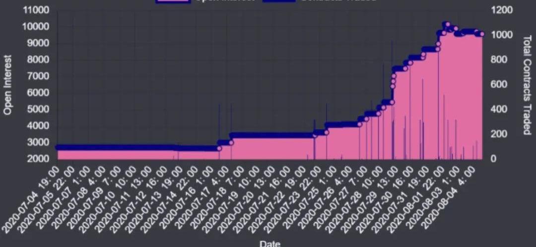以太币2020年9月25日到期期权的偏斜图这种现象在深度虚值期权中更为显著。继续我们的2020年9月25日到期周期,我们可以看到880看涨期权在以太币价格上涨期间出现了持仓量的激增。