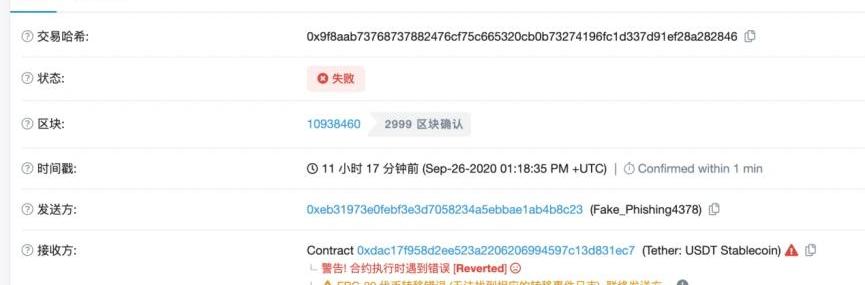 从交易记录来看,该地址首笔入账交易发生于北京时间9月26日02:49:18,该交易即窃取了超过1388万枚ERC20USDT。