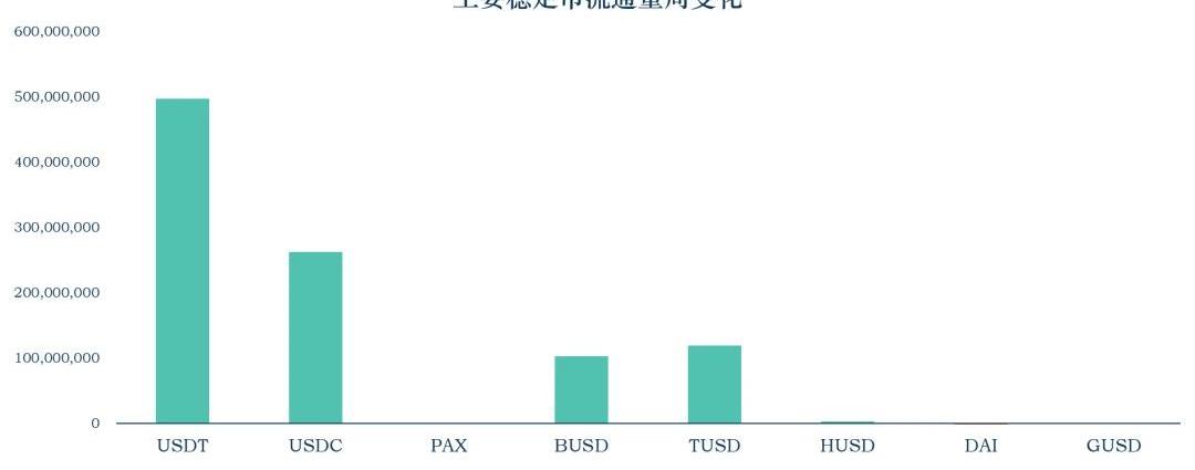 我们首先回顾在过去的一周中,各稳定币基本信息的变化。市场流通量