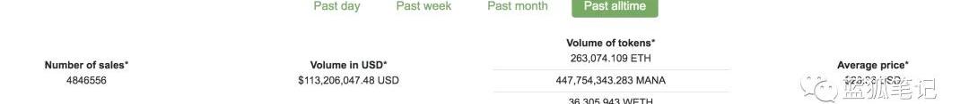 NFT从2016年开始发展起来,当时的加密游戏《AgeofChains》、《RarePepes》都是跟NFT相关的游戏。2017年最显著的NFT发展是加密猫的火爆。Decentraland中的NFT在2018年之后也开始受到早期关注者的重视,它上面的地皮、虚拟建筑、穿戴物品等都是有了交易价值。如今NFT除了游戏,数字艺术收藏品之外,还扩展到域名、运动等领域。按照NonFungible的统计,如今的NFT市场交易总量超过1.1亿美元,卖出的NFT超过480万个,均价在23.36美元。