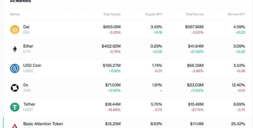 Uniswap有以下几点特征:1、UniswapV2直接实现不同ERC20Token之间的兑换;2、免费代币发行,实现了ICO完成的工作;3、提供了上币后的预言机服务对于一个新的DeFi项目,比如YAM作为创始团队,想把MKR、COMP等也放入我的资产池,从技术的角度最快的玩法就是采用0预挖,无私募,无众筹,无团队奖励直接上Uniswap,然后在项目里使用Uniswap里的MKR,COMP等的预言机,非常方便。借贷类——CompoundDeFi借贷在2020年上半年变动剧烈,经历3.12极端行情后,DeFi总锁仓价值曾缩水从8.8亿美元一日内跌至5.5亿美元,下跌逾37%。而在6月,DeFi总锁仓价值持续上涨突破16亿美元,其中借贷平台Compound锁定价值4.86亿美元,超越Maker的4.19亿美元,坐上DeFi协议的头号交椅。
