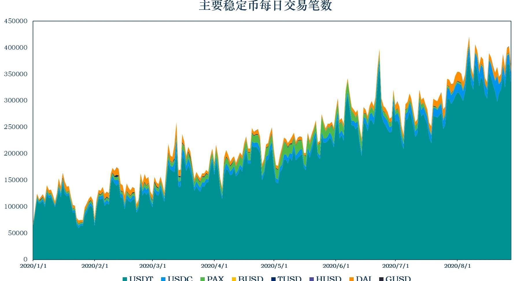 来源:MYKEY,CoinMetrics与前一周相比,主要稳定币每日的交易笔数平均上升3.13%。24小时链上交易额