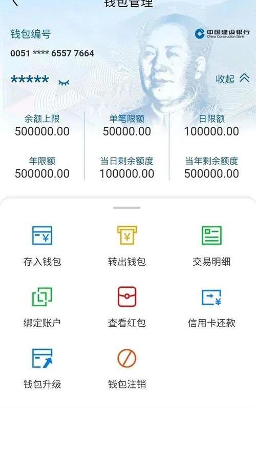 点击“我的”按钮,进入了钱包管理界面,这里能看到自己的钱包编号,余额限额等数据,以及存钱、转钱、信用卡还款等日常操作,坎通特别注意到有个“查看红包”的功能,莫非有全民普惠式空投红包的福利发放吗?哈哈,令人期待!