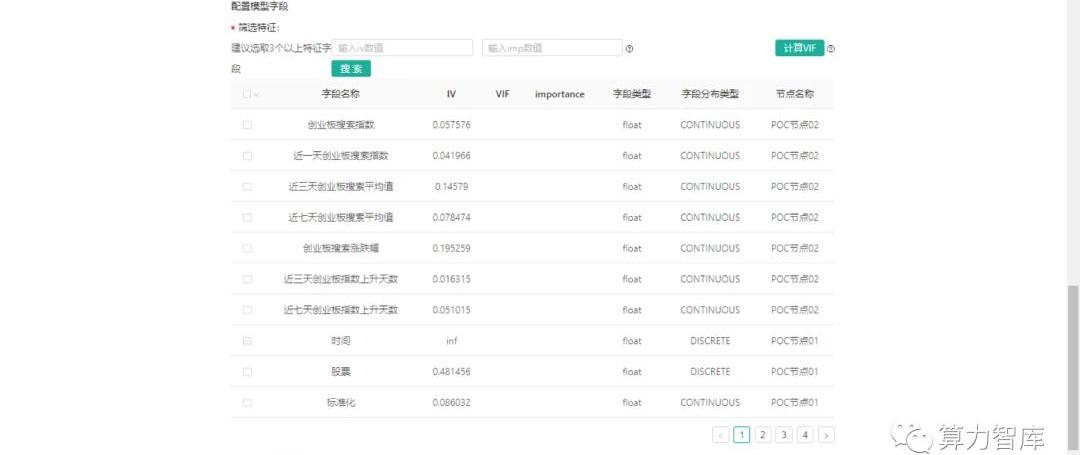 “这个case不是为了证明第三方数据有多牛,是表演一下投研对数据的安全建模方案”。研究标的:2019年8月5日-2020年8月4日创业板中所有股票研究目标:该策略目标为利用历史数据,预测每只股票当天是否涨幅超8%,即样本集中日股票涨幅超8%,y值为1,否则y值为0。研究变量联邦学习中节点A数据:通过股票历史数据,构建了当日星期、近三天平均收益率、近七天平均收益率、近三天绝对收益率、近七天绝对收益率、近三天标准差、近七天标准差、近三天平均换手率、近七天平均换手率、近三天平均成交量、近七天平均成交量、近三天上涨天数、近七天上涨天数、近三天涨幅大于5%次数、近七天涨幅大于5%次数、近三天跌幅大于5%次数、近七天跌幅大于5%次数,共17个指标。联邦学习中节点B数据:通过百度搜索中关键词为“创业板”的搜索次数,构建了当日创业板搜索指数、近一天创业板搜索指数、近三天创业板搜索指数、近七天创业板搜索指数、近三天创业板指数上升天数、近七天创业板指数上升天数、创业板搜素指数涨幅,共7个指标,模拟外部非公开的数据源。综上,该策略通过上述24个指标的构建,结合动量策略和反转策略原理,并通过百度搜索次数作为外部数据,作为反应市场情绪的变量,之后根据IV等指标筛选入参变量,构建逻辑回归模型,预测当日股票是否上涨超过8%。为验证百度指数作用,策略制定了四个模型作为对照,具体如下:样本集为全部股票,未用到百度指数构建模型样本集为全部股票,用到了百度指数构建模型样本集为华兴源创,未用到百度指数构建模型样本集为华兴源创,用到百度指数构建模型模型结论1)通过IV值可推断百度指数数据对于预测y值有较为重要的作用,其中创业板搜索涨跌幅和近三天创业板搜索平均值效果较为显著,通过模型系数可知创业板搜索涨跌幅和近三天创业板搜索平均值和y值具有正相关关系,即数值越高,越容易涨幅超过8%。