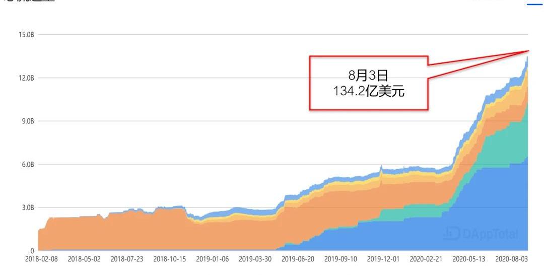 数据来源:OKLink区块链浏览器,8月4日今年上涨的态势来看,目前的数据超过了去年全年的5倍。7月的时候我在巴比特峰会上做了一个线性的预测,我们觉得今年DeFi增长的倍数和空间还是非常大的。空间大了我们认为会带来一些DeFi次新股交易流动的机会,目前来看,这一个月我们可以按照相同周期内,3到4月,4到5个相同的周期增长的速率来看。最近这一个月已经从20亿美金到突破了40亿美金,实现了翻倍,我们可以看到DeFi增长的势头还是非常大的。后面讲讲几个有代表性的数据,比如活跃钱包的数量。2020年Q2以太坊上已经有4000个DeFi钱包的活跃,2019年只有200个。从链上交易量来看,2020年上半年,DeFi交易量达110亿美元,比2019年全年还要高出2.5倍。为什么DeFi会发展起来,有几个观点。一个是多抵押品推动DeFi的快速增长,我们知道传统的金融世界有各种各样的资产种类、品类和数量。才能促使整个传统金融市场上开展多元化的金融业务,DeFi的世界也是一样。从比特币的抵押到以太坊和稳定币的抵押,我们可以预测到多抵押品对整个生态的推动还是有积极的作用,因为市场的规模和资产的种类都是正相关的、甚至超越线性的发展。第二个观点就是稳定币增长的趋势是向好的,稳定币在过去4年间已经经历了市场的检验,总市值在今年5月突破100亿美元,当前已达134.2亿美元,较年初58.3亿美元已经翻倍,进入成熟增长的阶段。稳定币从宏观的角度分析,目前我们的机会相对还是非常大的,当然市场里也涉及到金融和钱的事情容易产生“黑天鹅”,还是提醒大家注意风险。稳定币下一个周期会有一个大的洗牌,有可能是DeFi滋生出来的稳定币有大量的机会。