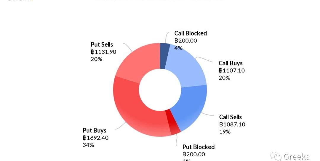 BTCOptionFlows可以看出,今天集中交易力量相对平衡,卖看涨买看跌的交易力量偏大而且对等,我们可以猜测很多风险逆转组合被成交了,本月交割后,看涨期权价格将快速被压低。