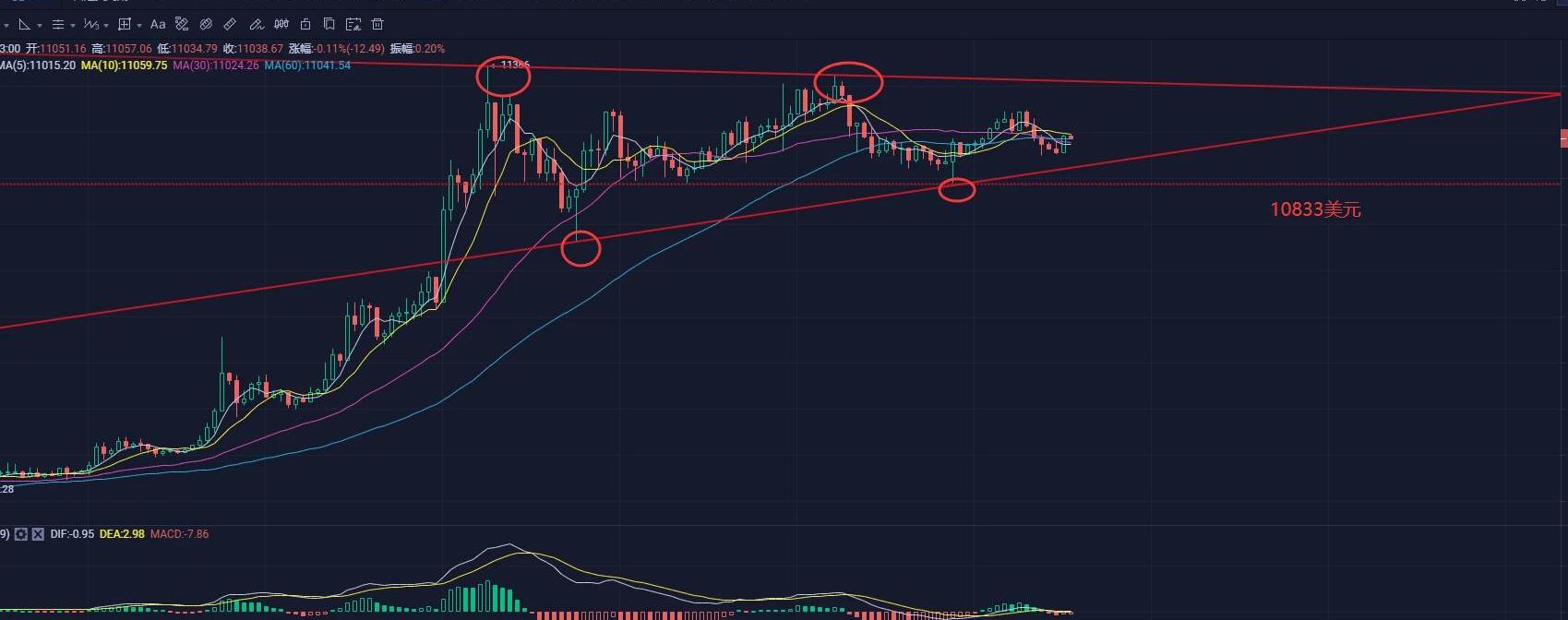 而支撑位比较特殊,虽然盘面看似二次探底,但实际上进行了三次探底,其中一次是10570美元,其他两次都是10833,最后一次发生在昨天晚上,所以当前两次下探不破的10833美元是最近的支撑位,即图中虚线,再下方便是10500美元。技术层面就是如此,而未来行情走势也少不了基本面的作用。一是大环境。近段时间比特币走势和黄金走势高度相似,黄金上涨受益于美联储的持续放水。这个原理也很简单,美联储持续放水,美国机构拿着多印的美金去世界各地购买资产,部分美元会流入黄金)市场,这是第一层。第二层是,当增发的美金流入世界各国时,各国家的美金变多,美元便下跌,以美元计价的黄金自然就会上涨,而比特币作为数字黄金,也会受到黄金价格的影响而上涨,甚至会有少部分资金会流入比特币市场。二是后续资金的流入,虽然我们上面说过美联储放水,会有小部分资金流入比特币市场,而且昨天凌晨美联储会议也宣布了暂时不会加息,说明放水还会继续。但不管是什么政策,实施的时间变长以后,对价格的边际影响都会降低,更何况,当前起到最大作用的是前期流到山寨币的资金回流而已,对行情起到主要作用还是场内的存量资金。场内的存量资金和美联储放水的少量资金将价格推到11000或12000美元,但这个位置可能就是极限了,想要继续推高就需要更多的资金,仅靠现有的资金肯定是不够的,这个时候便需要更多的被比特币上涨吸引进来的增量资金,当我们看到不仅是币圈,一些头部主流媒体也在更多关注和报道比特币价格上涨时,或许就是增量资金进场的时候。