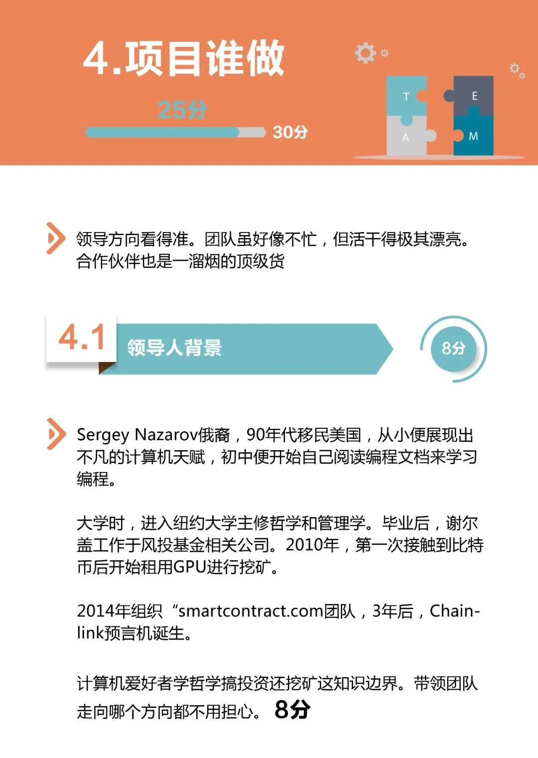 Oracle翻译:神谕,神示;能提供宝贵信息的人(或书)。Chainlink要当信息数据中间商赚差价。信息商将数据提供Link,LInk再将这些可验证的真实数据提供给智能合约来实现自动化的合同。Chainlink数据由API提供,比竞争对手用户提交后投票的模式可靠性和效率都要高。关键技术先进还上线成功来。根据Github,共103个代码仓库,提交代码的人数53人,项目分支有多达137个。ICO募集了大约3200万美元,根据Aicoin,LINK目前市值排名前十。LINK正处风口中,团队虽不太忙,但活好。虽然中心化金融机构尚未没落,但去中心化的DeFi正热,农村包围城市,对手犯错或是机会。币价较高,回调后更安全。风险提示币值提升过快,就投资而言,追高风险大。吴说评测室:全盘解析Filecoin74分展望中性偏正面吴说评测室启动项目评测标准解析