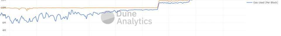 公式中,以太坊区块的Gaslimit以12,500,000计,平均区块间隔以13.2秒计,可以得出以下表格: