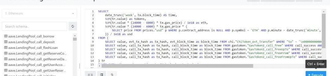 1.查询智能合约可读数据DuneAnalytics解码了以太坊智能合约数据,用户通过它的界面使用简单的SQL查询进行智能合约数据查询。