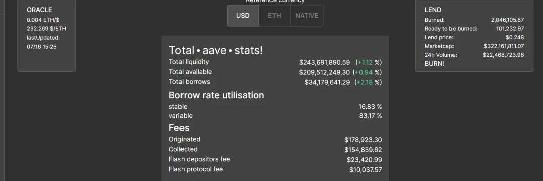 二、AaveAave是一个开放源码的DeFi协议,用于借贷数字资产,包括SNX,USDT,MKR,TUSD,ETH,ZRX等。该仪表板统计信息包括每种资产的存款利率,借贷利率,可用供应量和借入数量。
