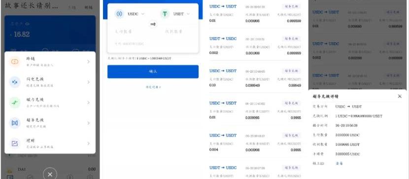 另外MOV也在5%~10%范围内设置滑点保护档位,给予一次性大额交易充分的滑点保护,避免给交易者带来过大损失。另外一档保护为,如果上链时发现与用户提交时汇率不同,可以允许有0.01%的偏差,超过则回退资产。MOV同时针对LP进行滑点保护,滑点保护机制会检测LP的范围超出,在微小范围内允许LP继续存,否则回退操作。在极端被大量套利的情况下,官方套利者及时接受过度套利空间,之后将利润返还给LP。除此之外,MOV公布了年化计息模型,这是Curve所没有的:如果没有流动性大小的任何变化,不论流动池中两种币的比例如何变化,甲的百分比不变,依然是自己持有的ctoken数量除以当前总发行的ctoken数量;当流动性大小改变后,计算出新的D值D1,然后此时总发行的ctoken数量是之前的D1/D0倍,如果此时甲提取自己的资产,百分比为甲持有的ctoken除以此时总发行的ctoken的数量。在产品上,MOV主要以移动端为主,其超导相关的功能分为理财和兑换两个板块