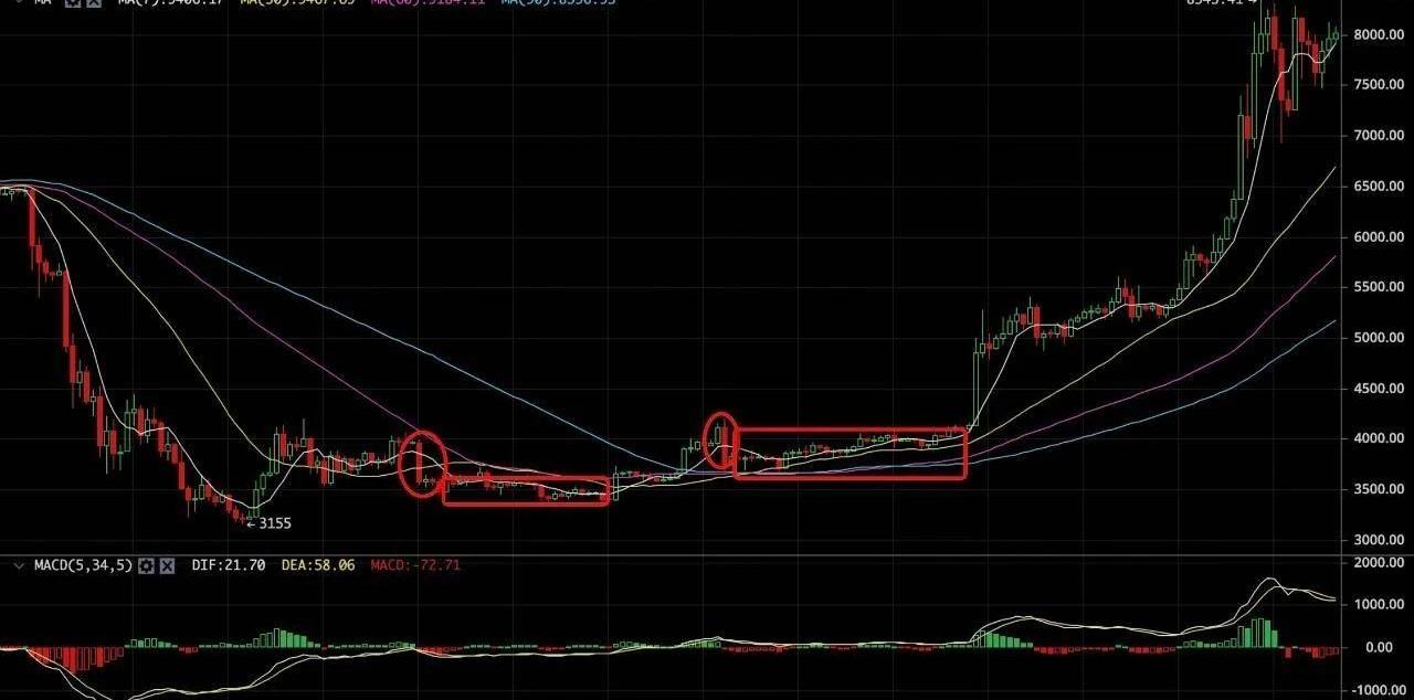 对于大部分散户来说,不必为了交易而交易,有时候,将自己置身事外,站在更高的角度来分析行情,会有不一样的明悟。接下来我们聊的“三重滤网交易系统”,便是这样一种交易系统。三重滤网交易系统是由投资家亚历山大·埃尔德博士设计提出。其依据的理论是,金融市场是复杂多变的,任何单一指标均无法预测和分析市场的走势,因此需要使用多个指标,相互配合下,较为准确的把握市场行情,以此来降低风险。我们都知道,金融市场有三种趋势,长期趋势、中期趋势和短期趋势。三种趋势可以类比为潮汐、波浪和涟漪,交易者应该顺着潮汐的方向交易,掌握市场波浪的走势,无需理会市场中的涟漪。三重滤网系统结合趋势,可总结为三点:市场潮汐、市场波浪和盘中突破。第一层滤网-市场潮汐:主要采用顺势指标辨识市场长期的趋势,进而从大方向上认知市场,了解市场所处的阶段;第二层滤网-市场波浪:运用日线图上的摆荡指标,辨识逆着潮汐方向的波浪,也就是在周线的趋势上寻找反方向的变化。比如在周线的上升趋势中,利用日线的跌势寻找买进机会。在周线的下降趋势中,利用日线的涨势寻找放空机会。第三层滤网-盘中突破:主要是辨认顺着潮汐方向的涟漪,根据盘中的价格走势设定进场点位。一言以蔽之,三重滤网系统的核心理念就是,利用长期的时间跨度决定你是做多还是做空;然后,贴近市场,运用中短期的时间跨度进行进场和离场战术调整。这和我们之前提到的短线、中线、长线策略相结合来交易的思路,是一致的。而在三重滤网之外,需要考虑止盈止损,只有带上了止盈止损的策略,才是一个健全完善的交易系统。止损:适当的资金管理方式,是交易成功必不可少的一环。三重滤网交易是顺势交易,因此在发现判断趋势错误时,需要及时止损。如果趋势判断错误,及时止损;如果趋势判断正确,止损点位需要上移至不赚不赔的价位;如果继续顺势交易,后期行情发生了变化,导致利润在缩水,则需要移动止损位,让自己实现部分盈利。一个有经验的交易者是不会将已经获得的盈利变为亏损的。止盈:市场趋势并不是一成不变的,盛极而衰是经常的现象,因此在三重滤网的第一层滤网,市场趋势发生逆转时,要及时获利了结,保住账面利润。最后,结合BTC历史走势图,来分析“三重滤网系统”:首先,我们选择一个最擅长的时间跨度来分析行情,日线级别BTC走势,以此为中介图表,向上拓展到周线级别,便是第一层滤网,向下精确到小时级别,便是第三层滤网。第一层滤网:周线级别,MACD顺势指标在0轴之下金叉,由远离0轴向0轴靠近,MACD快慢线上移,多头绿柱逐步增强,这是行情由空头转为多头的趋势,此阶段判定为超跌后的反弹行情,因此在合适的时机,考虑买入决策。