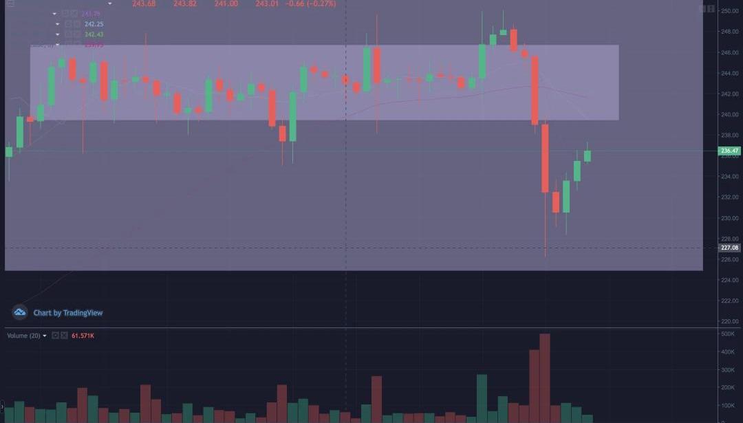根据CoinMarketCap数据,ETH近7日日均换手率为34.30%,较三个月内日均换手率下降了46.64%,较上周日均换手率下降10.68%。ETH本周处于高位震荡,未能再次创出新高,资金流出迹象明显,连续四周成交量下降,观望情绪较为严重,市场资金对概念炒作意愿逐渐降低,持币观望等待实质性利好落地。ETH在$235至$245区间内压力盘角度,可以此区间作为止损区间,逢高做空。