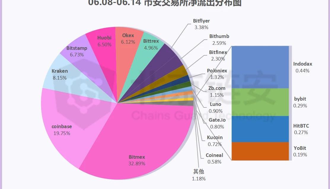 注:以上比例根据各交易所流出到已确定主体地址中的分布计算,排除了未确定主体的地址和独立地址,即在交易所流出的所有比特币中,相关主体的实际占比会更小一些。安全和数据要闻方面:2016年Bitfinex被黑地址多为社区网友推演分析北京链安链上数据分析专家SXWK表示,近期媒体多次提及的Bitfinex被盗BTC转移,其相关地址源头大都为事件发生后,比特币社区网友根据时间线的推演,大都在reddit进行讨论。如今天最新的一笔转账,其来源主要为当时Bifinex的热钱包地址之一的3NMkeWidzL7MQbrdMR9m7guANcNJofxyJD,它于当地时间2016年8月2日将416枚BTC归集到地址1Bf5aQqsd7gtjLysYQKtqQ3yBLDHZogouA,由于Bifinex于当地时间2016年8月3日宣布被盗,所以从时间线上被分析者认为这是黑客的转账交易之一。类似地址当时推演出很多,但是相关交易哪些是黑客盗币行为,哪些又可能是交易所发现问题后的紧急转账处理尚不明晰,同时网友分析出的被盗交易涉及的BTC总额度距离Bifinex公开的119,756枚被盗BTC还有相当距离今天的交易实际上是这416枚BTC被拆分为20笔UTXO,最大的为33BTC,最小的为15BTC,目前部分BTC也正在进行进一步小额的拆分转账。