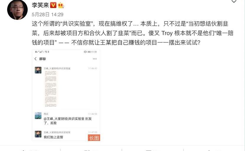 李笑来微博手撕王峰毕竟自爆BlockVC“欺诈”、“收割机构”的王峰,仅在2天后就与维权对象握手言和,已经引起韭菜的愤怒。真要回怼,想必也无力。当一些有头有脸的投资人跟着反夸王峰有度量、目光长远时,意见领袖李笑来的这一骂和韭菜站在了一起,收获了一众叫好。回过头看,王峰到底是老油条,没有给李笑来把瓜种大的机会。“车库”老人接连反目