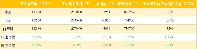 etherchain.org数据显示,平均算力环比上涨1.15%,暂报184.7TH/s;平均挖矿难度环比上涨0.96%,暂报2318T;由于网络拥堵,Gas费用继续上涨,平均每日挖矿收益环比上涨0.33%;矿工活跃度上升,新增地址环比上涨5.26%。