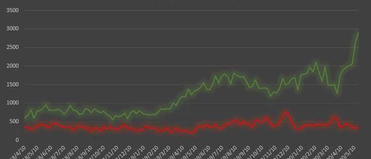 散户持仓方面,多头头寸自2645张进一步上涨至2896张,再创历史新高,空头头寸自345张微涨至346张。过去两个统计周期内这类账户的空头头寸几乎没有发生任何变化,同时多头头寸出现了非常大幅度的持续增长,这显示上周周报中提到的散户FOMO情绪仍在继续发酵。