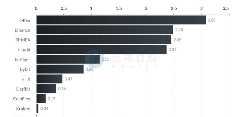 一位行业分析师向Odaily星球日报总结了OKEx流量上涨的原因。“最近的七连阳,让投资者此前的恐慌情绪好转,刺激了交易,尤其是合约交易。因为现货投资者普遍担心减半的不确定风险,所以观望踏空的不在少数,但这种级别的波动势必会吸引合约用户回场。这就是为什么涨幅显著是OKEx而非币安和火币。”对于BitMEX的流量数据大跌,分析人士则认为,主要原因在于,BitMEX在312大暴跌之际宕机、被指拔网线的行为,导致口碑下滑。另外,OKEx的交易深度已经追赶上来,一众衍生品新贵交易所也在打磨产品、细化服务、攻城略地,老牌王者BitMEX数据大幅下滑不足为奇。流量之外,交易量的变化也十分突出。Skew3月23日的数据显示,BitMEX的比特币合约24小时交易量跌至第三位,为24.5亿美元,而同期币安的交易量为24.8亿美元,OKEx的交易量为30.8亿美元。