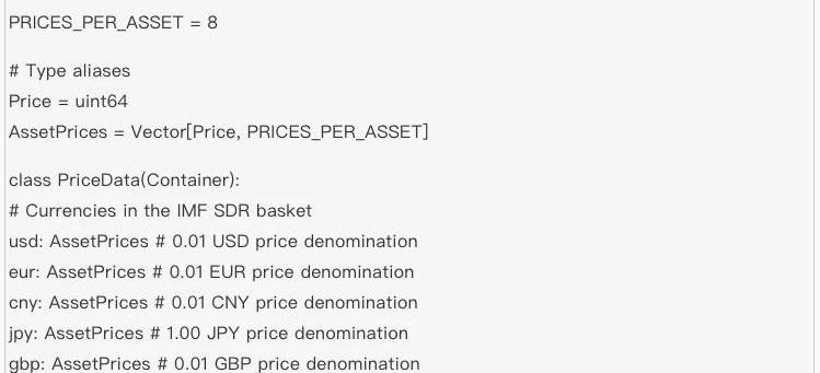 从以太坊2.0的共识观点来看,price_data对象的处理方式类似于graffiti字符串。也就是说,price_data可以是任意数据,其值被信标链状态转移函数和分叉选择规则忽略。诚实的信标区块提出者,必须为PriceData中的每个跟踪资产,填充尽量最好的价格,而这些价格必须:基线——代表跟踪资产的1ETH;快照——以最近的PRICES_PER_ASSETepoch界限进行快照;面值——以最小的ISO4217货币单位计价;四舍五入——用半下舍入法舍入;上溢——如果uint64溢出,则设置为Price(2**64-1);下溢——价格为负时,设置为Price(0);示例:诚实多数ETH-USD预言机