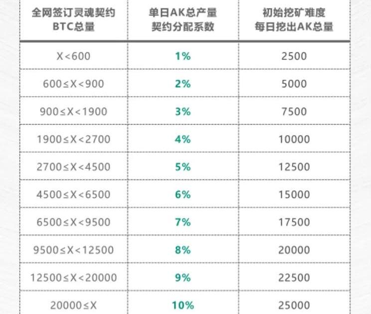 AK白皮书显示,每天,全网瓜分25000个AK这意味着,要靠“BTC灵魂挖矿”回本,玩家需要等待7000天,即19年。此外,参与“BTC灵魂挖矿”,需要投入0.001BTC签订“灵魂契约”,此后每周,玩家也需要投入0.001BTC续签。“如果你的账户里不到1个比特币,‘灵魂挖矿’不仅赚不到钱,还会赔钱。”CXC玩家白永年说。事实上,AK白皮书指出,AK的总发行量为3亿,2.6亿由挖矿产生。而2.6亿AK中,仅有1%-10%来自“BTC灵魂挖矿”,占挖矿产出总量80%-98%的,是“AK无极挖矿”。这,才是AK最重要的产出模式。02无极挖矿