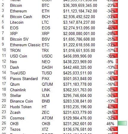 消息层面,北京“监管沙盒”将出台监管细则应用“出箱”后须由持牌机构经营;日本加密货币交易所开户需提交两种KYC文件;瑞典央行竞标主办国际清算银行的数字货币研究中心;青岛海关区块链数据分享系统上链实测。市场情绪层面,根据Alternative.me统计,今日市场情绪为极度恐慌,恐慌贪婪指数为11。2.币种涨跌幅分布今日市值前100的币种中,币价整体小幅回暖。之前就有多次强调过山寨币大概率会有小阳春的出现,今日山寨币占比创新高。山寨币种涨幅最高的是类代币DRG,涨幅约40%。其余山寨币及主流币都有较为客观的涨幅。跌幅最大的主流币为ETC,昨日借着减产割了一波韭菜,今日跌幅相比较大。同样今日减产币DASH也故技重演,追涨减产币的近期要多加小心。