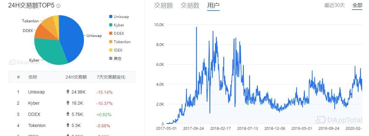 平台币市值或将进入一个缓慢的增长期平台币有类似券商股的属性,而区块链的特性赋予了它更多,除了类似分红的销毁机制,还有早期平台币抵扣手续费的使用属性,19年IEO项目筹集平台币的融资属性等。今年多数平台甚至把未流通的部分也进行销毁,这些都是利于平台币价格上涨的关键因素。而当这些手段使用殆尽之后,未来推动平台币价格的新式手段将乏善可陈,销毁未流通部分更像是平台币“殊死搏斗”的最后一招,比特币跌破7000美元大关后,交易所现货的交易量和期货的持仓量来看,未来一旦进入长时间的低位,那么交易所光鲜的“躺赚”时代将一去不返。去中心化交易所或已被“证伪”本周由加密头部资本PanteraCapital、InitializedCapital投资的去中心化交易所Sparkswap宣布将关闭,这是多数DEX的一个缩影。从Dapptotal提供的数据来看,不管是在17年的牛市、18年熊市、19年的牛熊转换,用户数量和交易量都没有质的变化,多数DEX仍然以“乌托邦式”的去中心化托管为卖点,操作门槛高,交易体验不好,理想式的去中心化没有了做市商,点对点的撮合系统大大降低交易深度,通过用户自己托管私钥,也并没有解决资金安全问题,而Uniswap通过资金池的方式,获得了较好的交易深度,占据了DEX的半壁江山,其他DEX入不敷出,仍然面临着用户持续外流的局面,3年多来大量资本和技术极客涌入此领域,而目前做出的成绩寥寥。