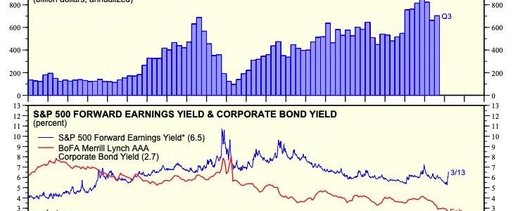 来源:FRED要支撑股票价格上涨,必须有大量的买单,在美股市场中大笔买入股票的究竟是哪些人呢?美联储的数据显示,最大的买家其实是美国上市公司自身。上市公司回购自家股票的动力主要有以下几个:巨额的现金回购,产生了股票市场上大量的买单,使得本公司的股票更加稀缺,推动股价上涨;回购后的股份大部分以库存股的形式存在,这部分库存股不参与分红,即使企业盈利水平不变,流通股数目的减少也使得每股收益率上升,从而拉动股价上升。上市公司的高管握有本公司大量的股票期权,用公司的钱回购自家的股票,拉高股价,高管们个人也能获得巨大的收益。在这三大因素的助推下,美股的回购市场蓬勃发展。S&P500公司的回购金额从2009年一季度的400亿美元飙升至2018年一季度的近2000亿美元。至2018年三季度,S&P500公司分红和回购总额已经逼近总营业收入的90%。在大部分部门中,一半以上的利润用于回购公司的股票。根据美联储的数据,截止2017年末,美国非金融企业累计购买了3.37万亿美元的股票,ETF和共同基金累计购买了1.64万亿美元的股票,而美国家庭和机构分别净出售了6557亿美元、1.14万亿美元的股票。而根据标普的统计,自2009年以来的十年大牛市,标普500的成分股回购数额由2009年的1030亿美元上涨至2019年第三季度的7036亿美元,整整七倍有余。