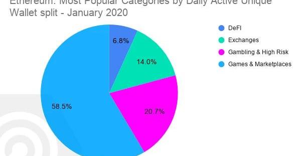 说到类别上的比较,截至2020年1月底,在游戏和市场类别中每日活跃的独立钱包的用户数量是2019年1月底的三倍。总的来说,上述类别中的用户增长了163%。以太坊上最受欢迎的Dapp类别是游戏和市场,增长了7%。特别是BraveFrontierHeroes的推出,使该类别在月末时活跃的独立钱包数量达到10467个。