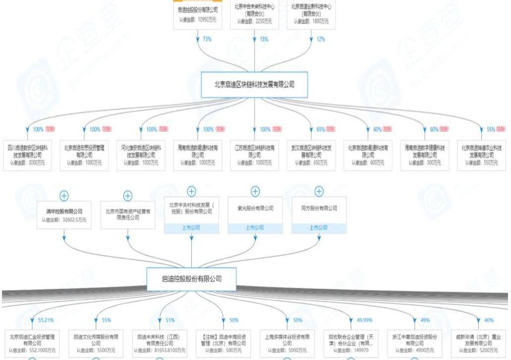 资料来源:公开披露资料,零壹智库综上所述,参与申请新加坡数字银行牌照的中资企业,包括蚂蚁金服、腾讯控股、小米金融、字节跳动、滴滴、美团、亿联银行与微众银行等股东基因,科技实力十分显著。这些互联网巨头均试图借助自身的资源禀赋与海内外联动优势,进一步扩张普惠金融业务版图。国有区块链企业入局零壹智库发现,在已披露的10家申请机构之中,有一家属于国有控股的区块链科技企业——北京启迪区块链科技发展有限公司。据企查查信息查询,启迪区块链公司成立于2018年11月,注册资本1.5亿元,经营地址位于北京市海淀区中关村。从股权结构来看,它的第一大股东是启迪控股股份有限公司,而启迪控股的股东之一为北京市国有资产经营有限责任公司,因此启迪区块链公司可称为一家国有控股的区块链科技企业。由于启迪控股的对外投资公司较多,因此展示出部分对外投资主体。图3:启迪区块链公司及其股东启迪控股的股权结构情况