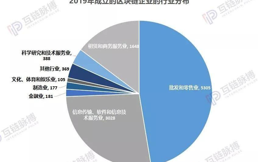 从地域划分来看,2019年成立的区块链企业多数聚集在广东省。而若从企业类型来看,2019年成立的区块链企业,相对集中于批发和零售业类,共有5305家。互链脉搏观察,这类公司主要经营的区块链业务是供应链管理方向,兼有区块链技术开发、区块链技术咨询、新零售加区块链加通证加积分的发行与管理等方向。