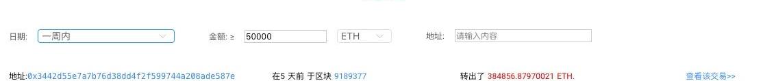 (超过5万ETH转账)上周,“5万ETH以上”转账次数共计1笔,最大转账金额38.4万个ETH,转入与转出地址不详,目前尚未分拆。三、生态与技术