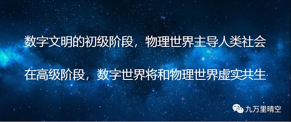 之所以本文把现阶段的数字文明定义为初级阶段,最重要的衡量指标是人类社会的数字化还没有达到高级阶段的程度,即数字化率还处于比较低的阶段,距离全面数字化还有很长的路要走。如前所述,在数字文明的初级阶段,物理世界主导人类社会,在高级阶段,数字世界将和物理世界虚实共生!