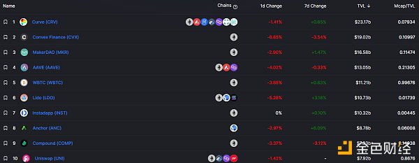 DeFi项目锁定资产前十排名及锁仓量 数据来源:defillama