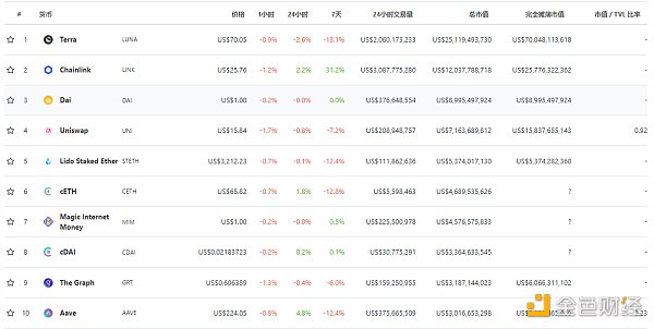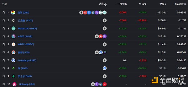 DeFi项目锁定资产前十排名及锁仓量 数据来源:defillama