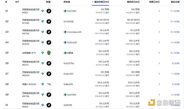 24小时内销售价格前十的NFT 数据来源:NFTGO