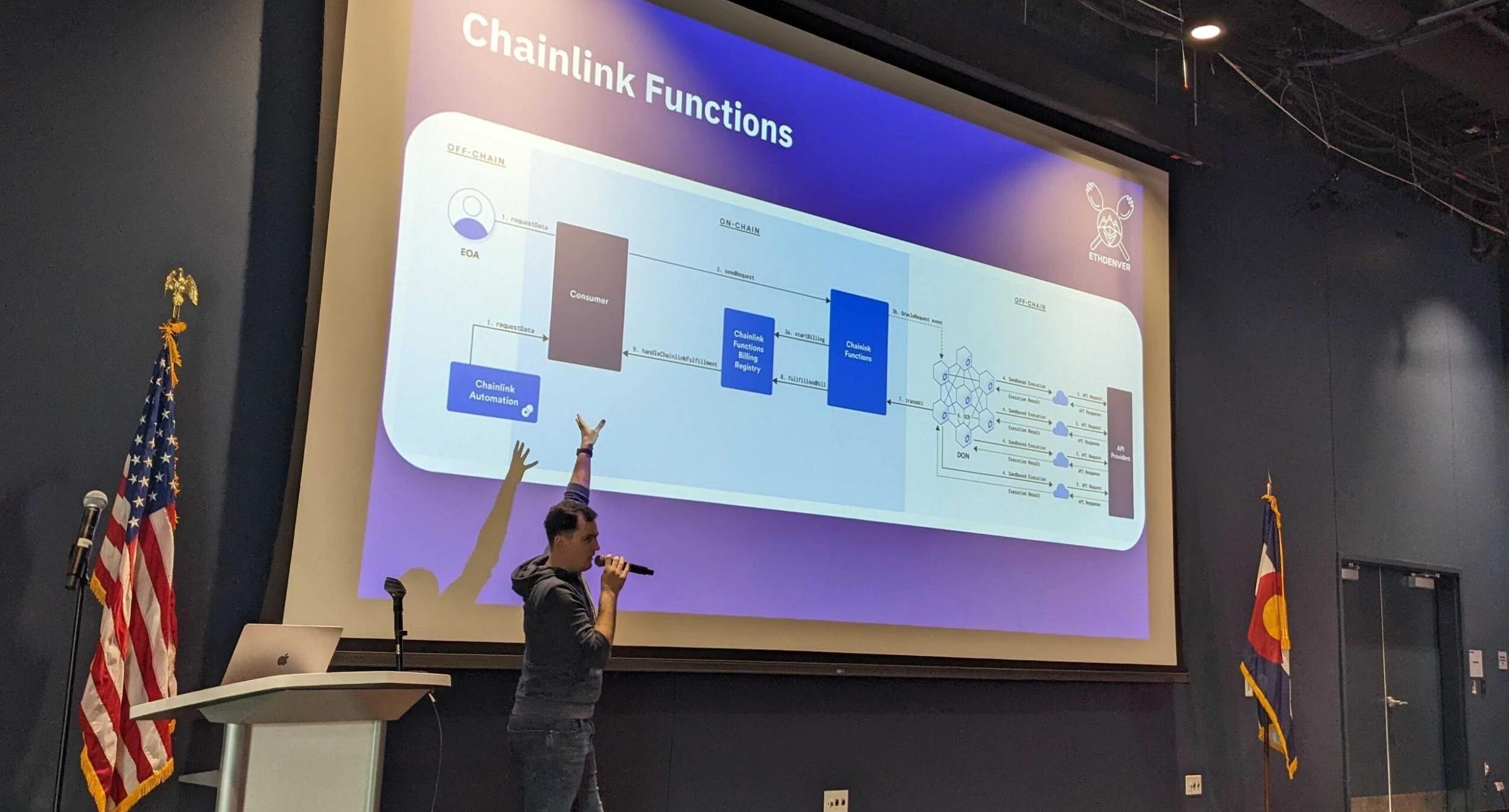 Chainlink开发者关系工程师AndrejRakic在ETHDenver的CampBUIDL训练营。