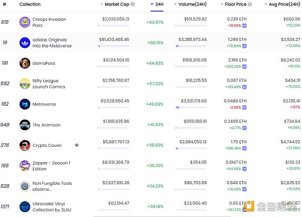 24小时内销售价格前十的NFT 数据来源:NFTGO