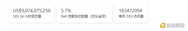 2.过去24小时去中心化交易所的交易量:90.74亿美元
