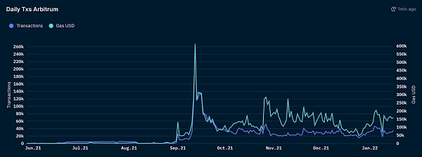 就最近 30 天的唯一活跃地址而言,Optimism 有 45.2k,而 Arbitrum 则略多一些,为 66.8k。Optimism 和 Abitrum 都处理大约 2-3% 的以太坊交易总数,分别处理 21k 和 34k 交易。自两条链的主网公开发布仅几个月,随着时间的推移,我们可能会看到更多的 dApp 和用户参与这两条链。