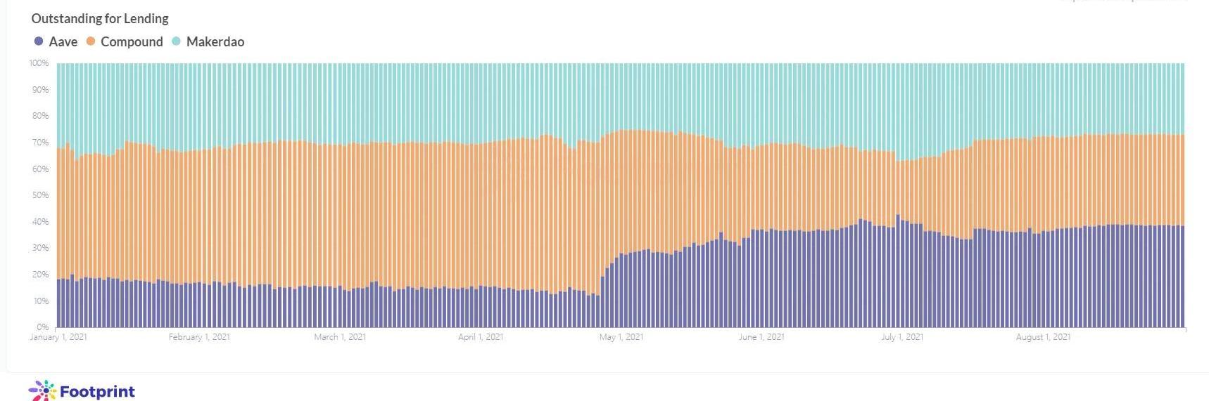 头部Lending类平台TVL占有率变化,数据来源:FootprintAnalytics