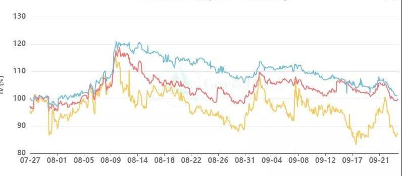 季度交割比较平静,昨天是最近为数不多交割在最痛点位的大交割日。但交割后由监管消息带来了一波近4000美元的暴跌,比特币本就处于脆弱的反弹行情,后市需要更加谨慎。各期限IV仅在暴跌期间下降,很快就恢复如常,期权市场情绪稳定。