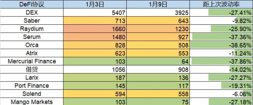 Solana链继续呈现下降趋势,连续下降幅度较大;本周跨链协议SynapseProtocol依旧保持了较高的TVL增长,上周上线了基于NEAR开发的EVM协议Aurora,可通过nUSD池从任何EVM链桥接USDC和USDT,带来的增长明显,但其代币SYN本周伴随着行情端的下跌出现了大幅度下降;另外值得关注的协议有QiDao,其TVL已经保持长期稳定的增量,协议内容是Polygon上的稳定币借贷协议,用户可通过质押token资产获得MAI稳定币,且无需支付利息。