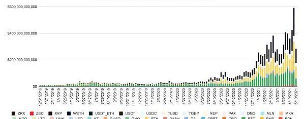 我们可以看到这种增长在很大程度上反映在加密货币交易量和其他采用指标上。去年,Chainalysis创建了全球加密货币采用指数,该指数根据国家人口和经济规模调整的加密货币采用情况对各国进行排名,以捕捉主流、草根采用情况。根据Chainalysis的数据,每周加密货币交易量已从2018年12月下旬的约89亿美元增长到2021年5月3日当周的超过5910亿美元。关注加密货币使用最活跃的地方也很重要。
