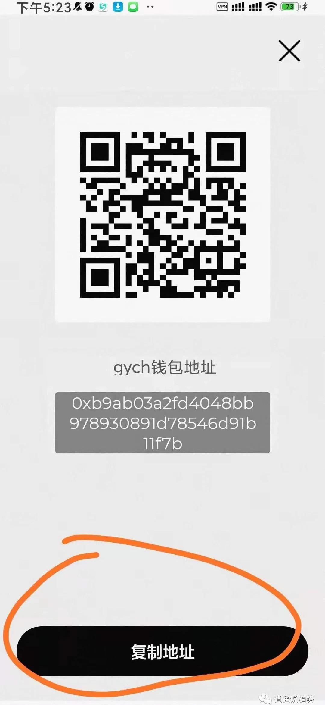 4.点击收款地址复制下来,在WemixWallet钱包粘贴即可。